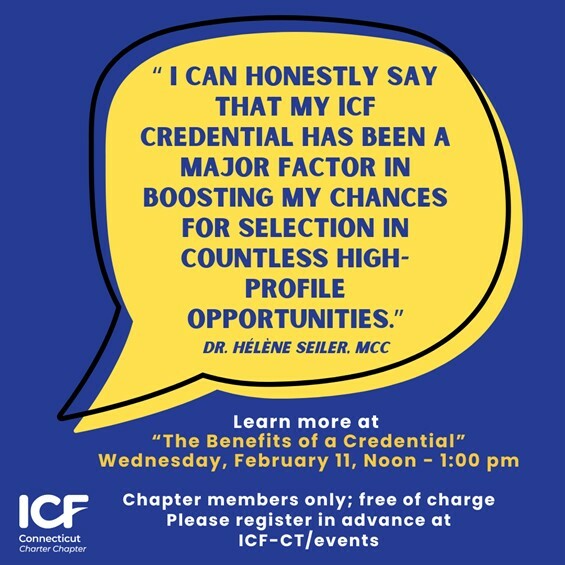 Wondering if an ICF credential is worth the time and investment? Join us February 11 at Noon for Benefits of a Credential – a panel conversation with Chapter members who’ve been exactly where you are.