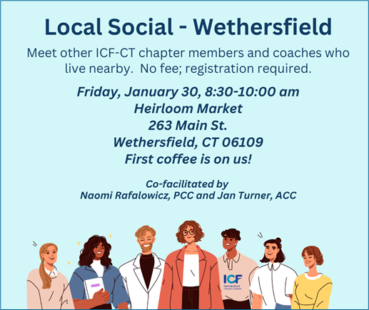 Meet some of them at a Local Social in Wethersfield on Friday, January 30th. Join us for this informal gathering and a coffee on us! What better way to spend a cold winter morning than with fellow coaches.
