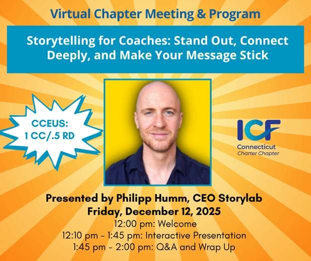 | | | Storytelling for Coaches: Stand Out, Connect Deeply, and Make Your Message Stick, December 12