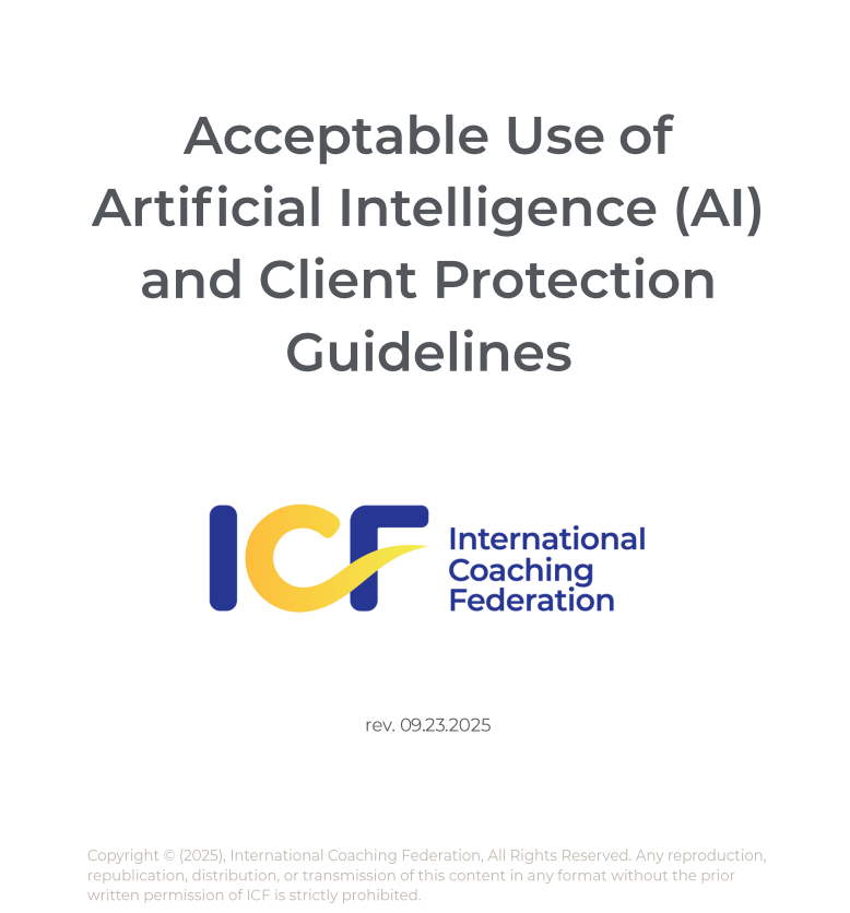 Our Technology committee works to continually update the following set of curated resources drawn from ICF research on ethical standards and best practices. You’ll find research, documentation, worksheets, and sample coaching agreement templates. We present these resources to help coaches build confidence and fluency in this rapidly evolving space. Our hope is to inspire deeper awareness of how AI and technology show up in coaching practice.