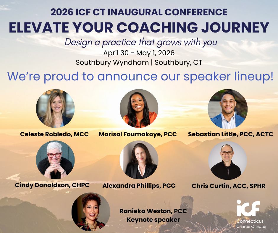 Join us for a meaningful two-day gathering as ICF Connecticut hosts its first-ever conference, a milestone event designed to both support today’s coaching practice and strengthen what comes next. Check out our amazing lineup of presenters and workshop leaders: