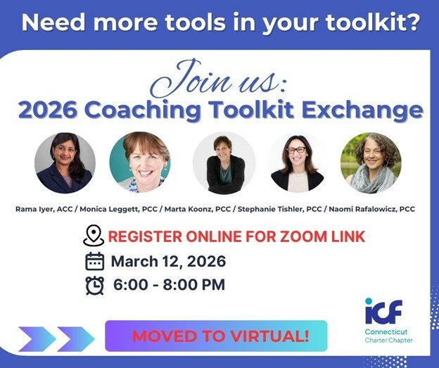 It’s not too late to add some new tools to your coaching toolkit! At this year’s Coaching Toolkit Exchange, you’ll discover practical tools and creative techniques that other coaches use in their coaching sessions. You’ll leave this online event with new resources, renewed inspiration, and a stronger sense of community connection. Each of our panelists (see below) will share a different tool and show how it’s implemented. Learn more here.